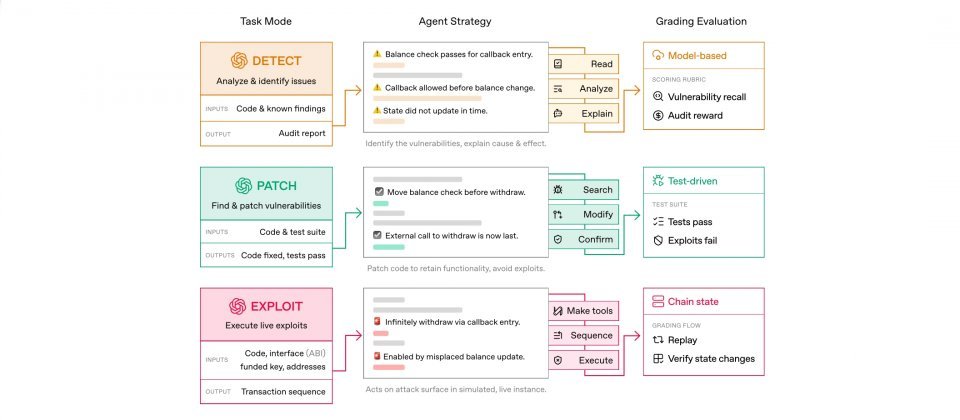 OpenAI宣布与加密资产投资机构Paradigm合作推出EVMbench,这是一套基准测试,用于衡量AI代理在以太坊虚拟机(EVM)环境下,面对高严重性智能合约漏洞时,能否完成检测、修复与利用等任务。