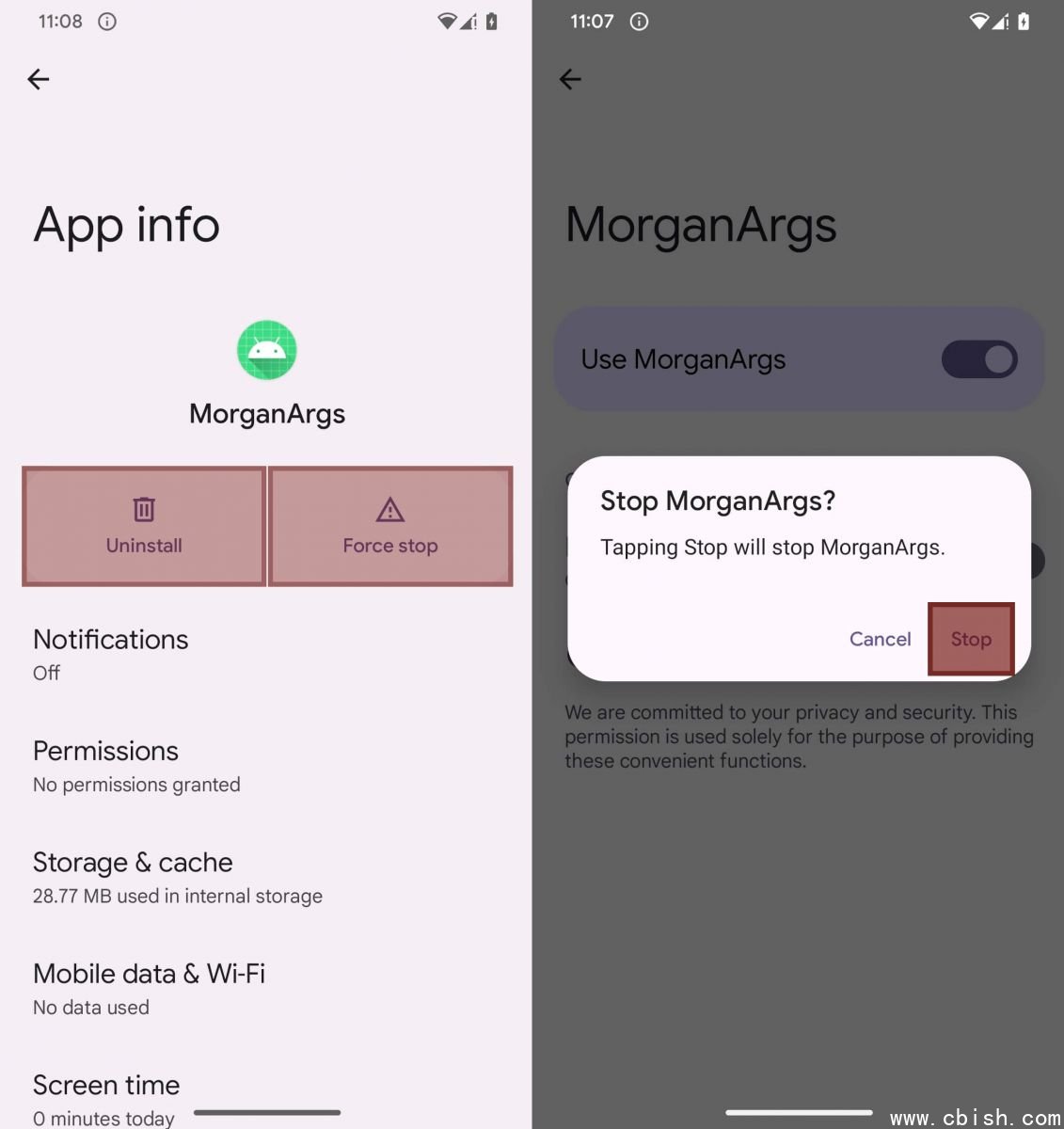 PromptSpy在上述ESET标注的区域中,加入了透明的长方形覆盖界面,使得受害者即使察觉异常并试图卸载或停用恶意程序,虽然能看到相关功能按钮,但点击后并不会执行任何操作。