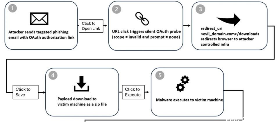 微软安全团队发出警告,一种新型网络攻击手段正在对政府机构与公共部门构成威胁。攻击者利用OAuth认证流程中正常的重定向机制,诱导受害者点击看似正规的登录链接,从而被引导至攻击者控制的基础设施,实施后续的网络钓鱼与恶意程序传播活动。