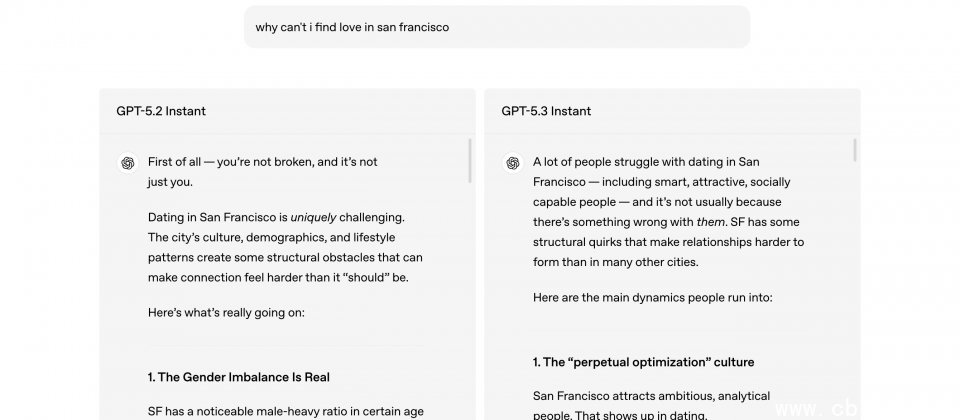 在网络搜索的应用场景中,以往的模型往往容易过度依赖搜索结果,导致回复内容变成松散的网页链接列表。GPT-5.3 Instant对此机制进行了调整,能更平衡地融合网络获取的最新信息与模型自身的内部知识。