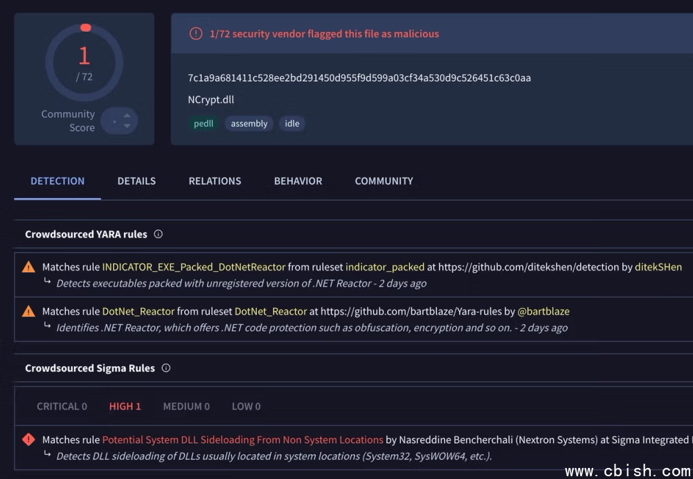 Socket同时指出,该恶意程序具有高度混淆特性。在VirusTotal的72家安全厂商检测中,仅有一家识别出恶意行为,表明这类供应链攻击在早期阶段往往难以被安全工具发现。
