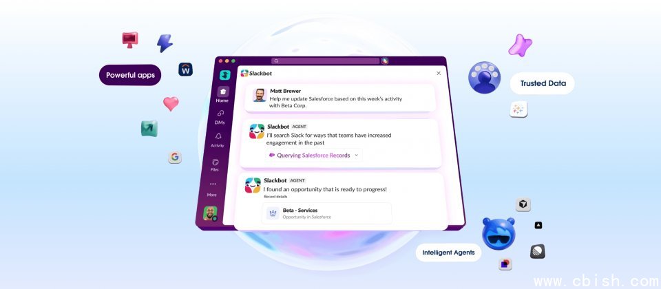 针对中小企业,Slack在Slackbot中内置原生客户管理功能,可自动读取频道内容,更新交易、联系人与通话记录等信息,并可后续扩展至Salesforce,无需数据迁移。对于使用Salesforce的企业团队,Slackbot进一步成为Salesforce Customer 360的对话式入口,用户可通过Slack对话直接更新商机、查询客户信息或触发跨部门工作流。