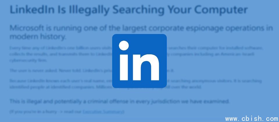 一项名为BrowserGate的研究指控,微软旗下的LinkedIn网站在未经用户同意的情况下,暗中在用户浏览器中下载用于监控上网行为的程序。