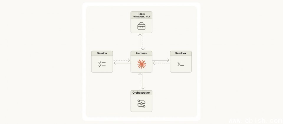 Managed Agents 的设计灵感来源于操作系统的抽象化原则:如同操作系统将硬件虚拟化为进程(Process)和文件(File)等抽象接口,使应用程序无需处理底层硬件细节,Managed Agents 也将代理系统拆分为三个彼此独立的接口:负责推理决策的“大脑”,即模型与控制循环;负责实际执行的“双手”,即沙箱容器与工具;以及独立存储的会话日志。三者通过标准化接口通信,任一部分出现故障或需要替换,都不会影响其他部分的运行。