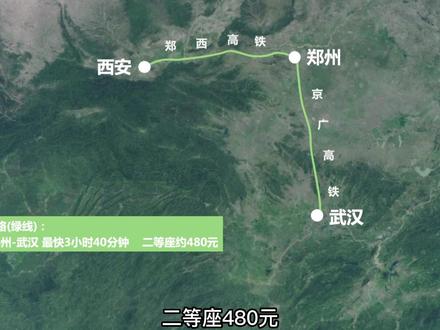 票价还能便宜100多块钱? 西安两个半小时能到武汉?票价便宜100多块? 西安到广州上海能快多少? 来详细讲讲 走的是图中绿色线路 等2025年左右 西武高铁西安至十堰段通车 加上武汉枢纽直通线通车 西安到武汉实现时速350高铁直连 如图粉线所示全程710公里 假设标杆车仅停靠襄阳东站 那么均速可以按照255算 一共就是165分钟 所以届时西安最快2小时45分钟左右 我们参考郑渝高铁襄阳至万州段0.55的系数 所以西安到武汉就是194+141等于335元 比目前便宜了145元 另外在武汉接入京广高铁可直达广州 西安到广州仅需6个半小时 小 目前西安去往武汉 益击向 都是五个半小时左右 西安-襄阳-武汉最快2小时45分钟二等座约335元 郑州 25年路线(粉线): 小伙伴们激动了吗 西安 广州方向 武汉 铁 二等座约785元 高 襄阳 十堰 256km*0.55=141元 广 二等座 南京 商洛 郑西高铁 关注D哥中国交通讲给你听 主页更加精彩