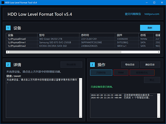 尽管功能强大,但HDD Low Level Format Tool 的界面设计极为简洁: