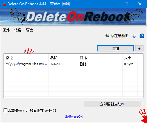 - 运行 Delete.On.Reboot.exe
